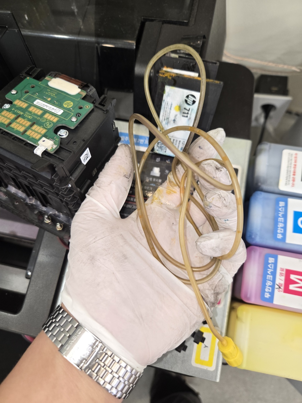 잉크 튜브도 교체를 시작합니다.