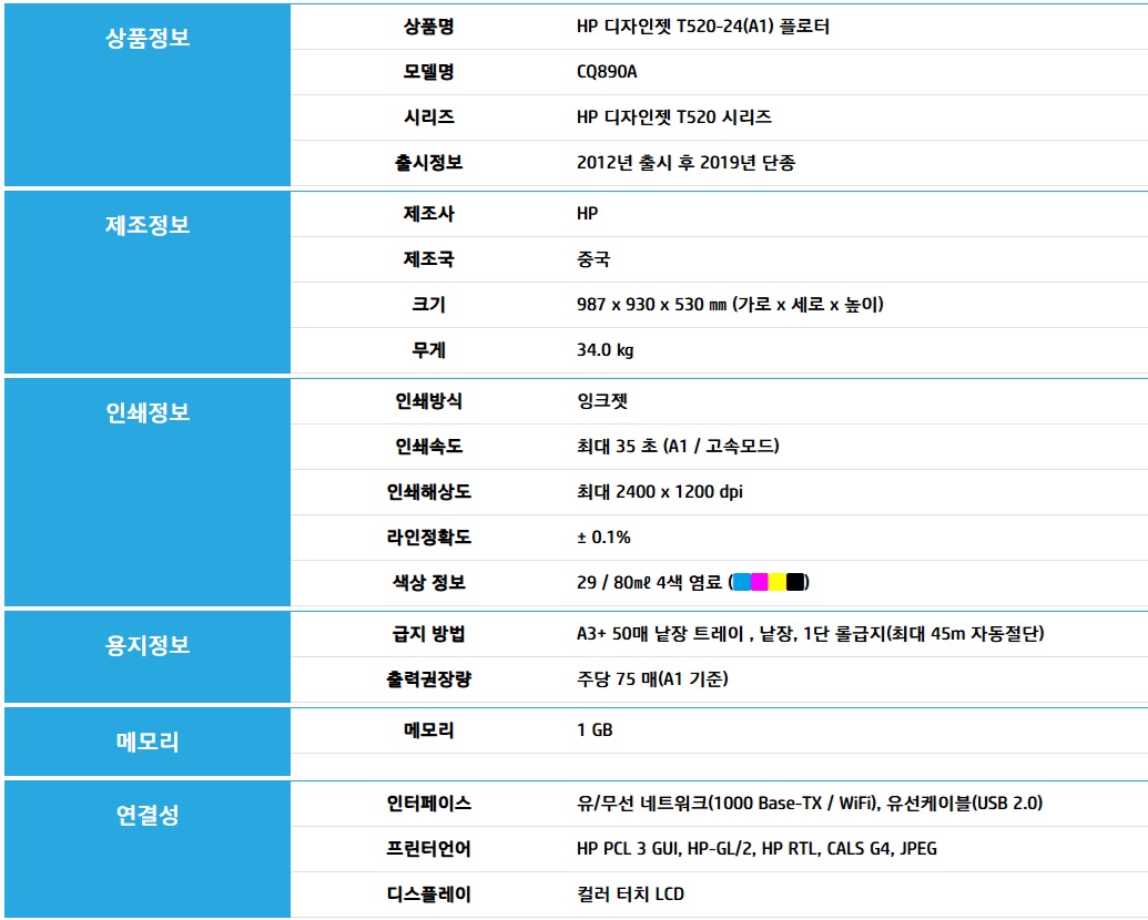 사용중인 플로터의 스펙은 아래와 같습니다.