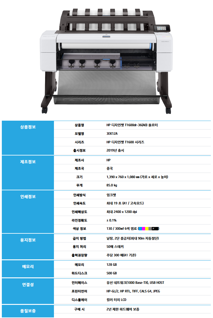 HP DESIGNJET T1600DR-36인치 플로터 임대설치를 완료했습니다.