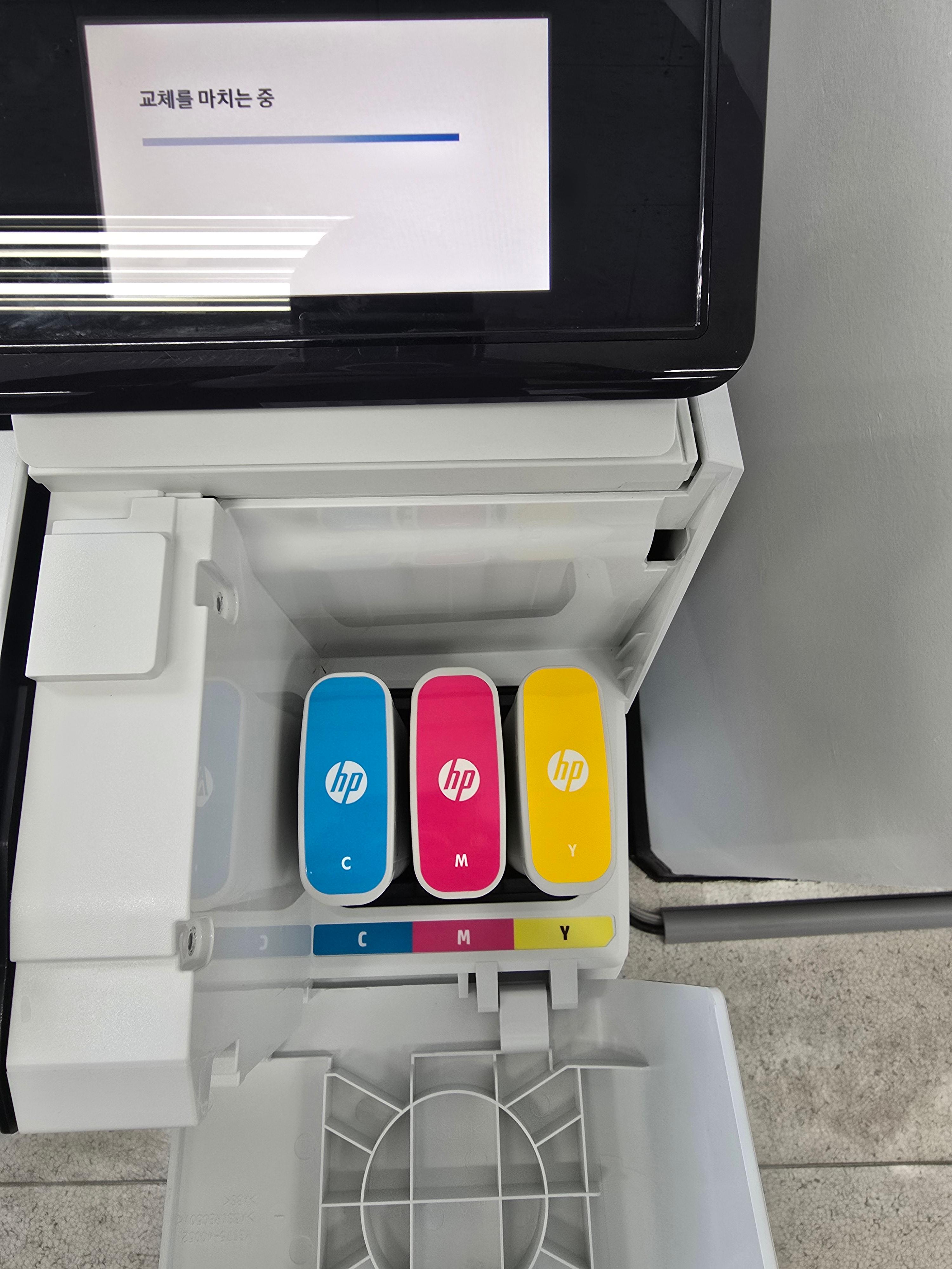 오른쪽에는 C,M,Y잉크가 장착됩니다.