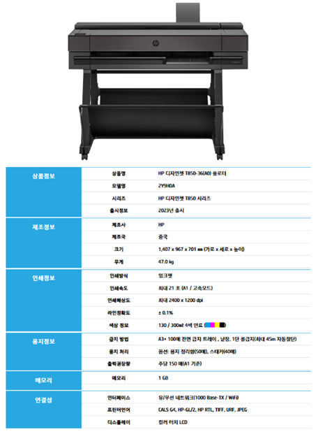 HP DESIGNJET T850-36인치 플로터를 구매해주셨습니다.
