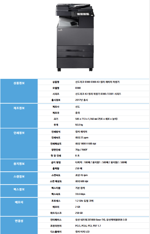 이번에 소개해드릴 모델은 신도 D300 복합기입니다.